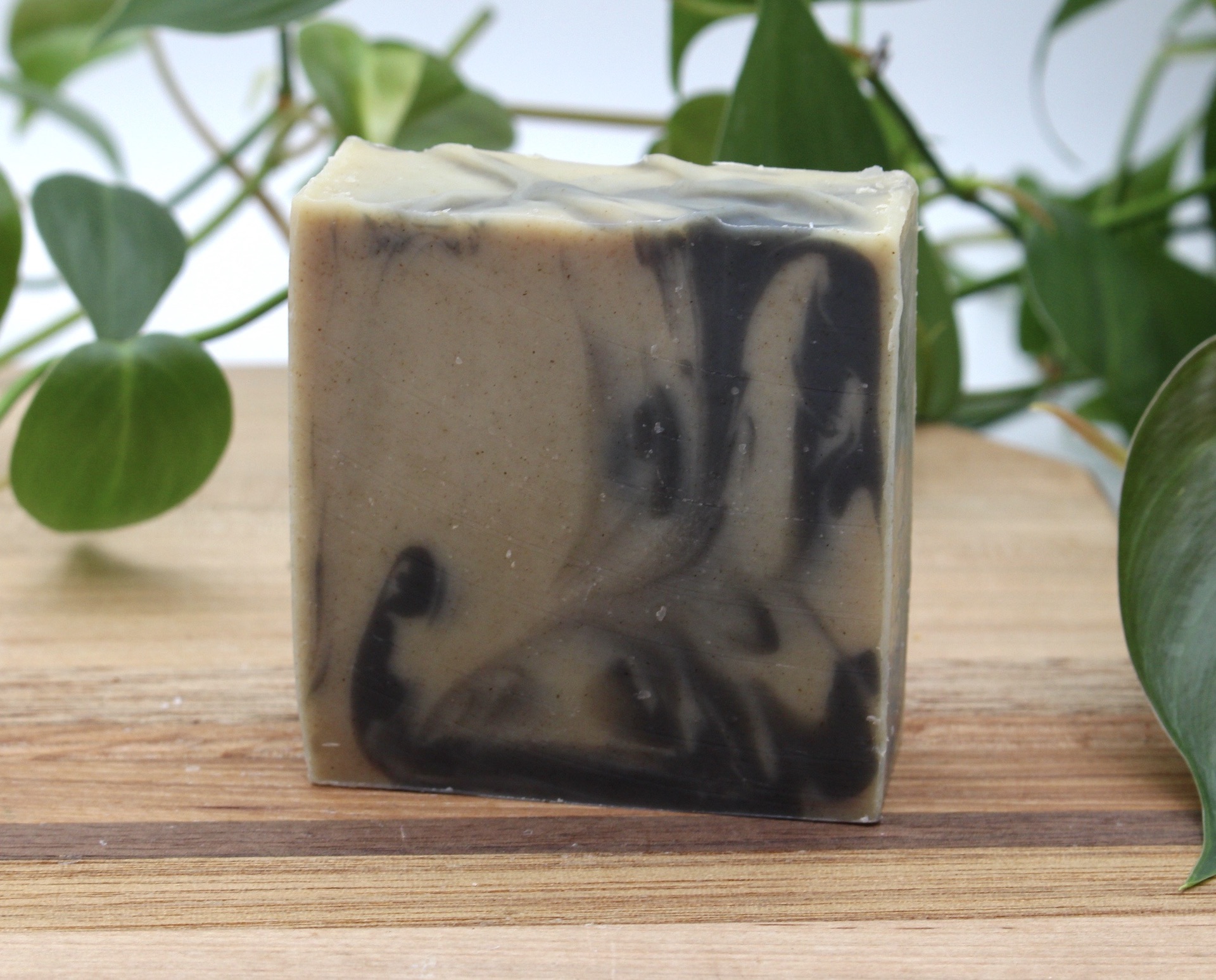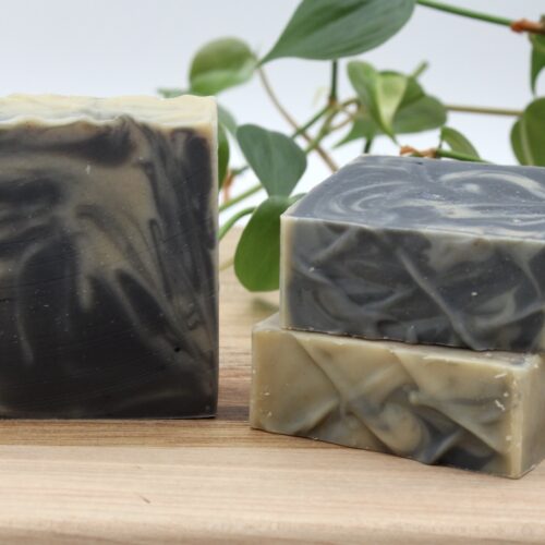 Ingredients: olive oil, coconut oil, tallow, sunflower oil, castor oil, water, lye, cedarwood and balsam essential oils, moringa and activated charcoal powder
