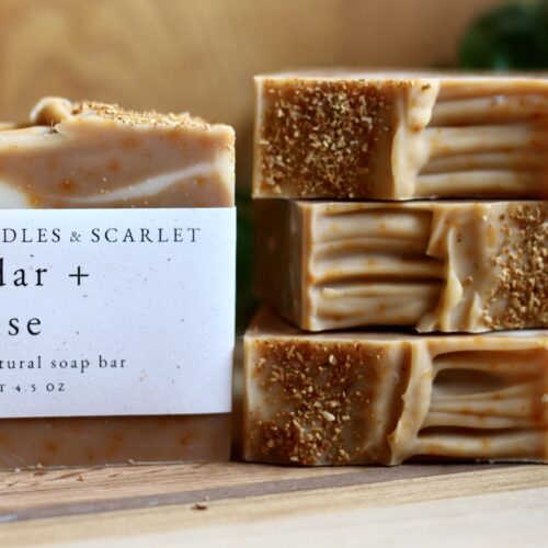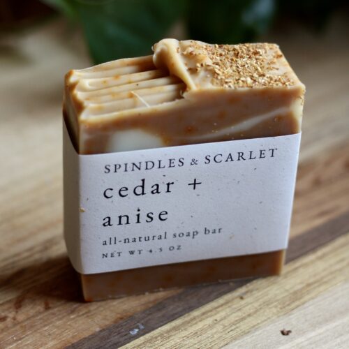 Spindles and Scarlet All-Natural Soap Bars are handcrafted in small batches using the cold process method. Our recipes use nourishing oils and butters, natural colorants, and essential oil scents to create a 100% natural soap bar that gives you a gentle clean without over-drying.
