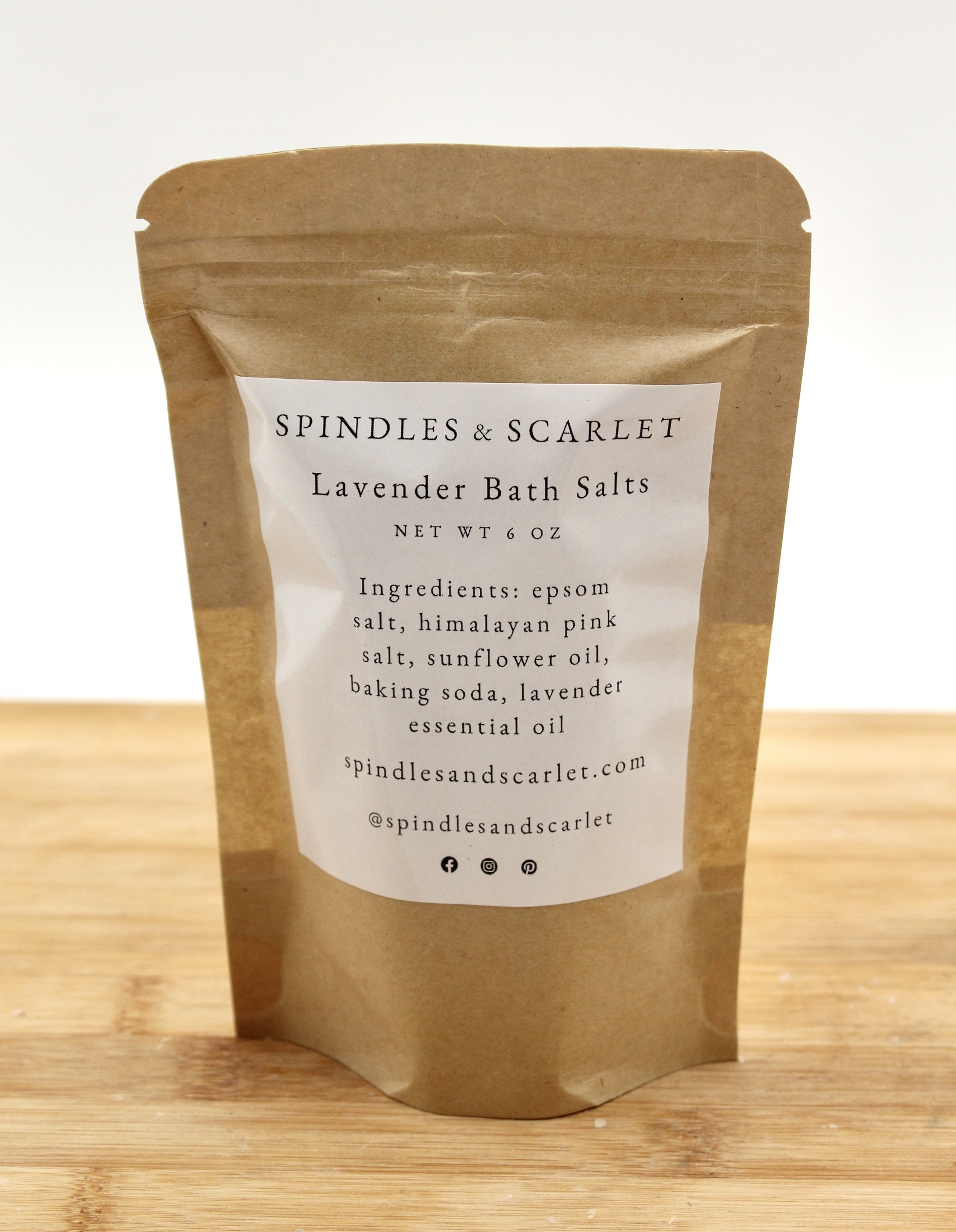 Relax your muscles and mind with a luxurious soak in a bath infused with Spindles and Scarlet bath salts. The combination of calming epsom salts and comforting essential oil blends are sure to give you a tranquil bath experience after a long day.