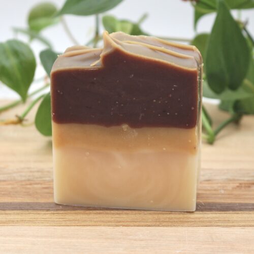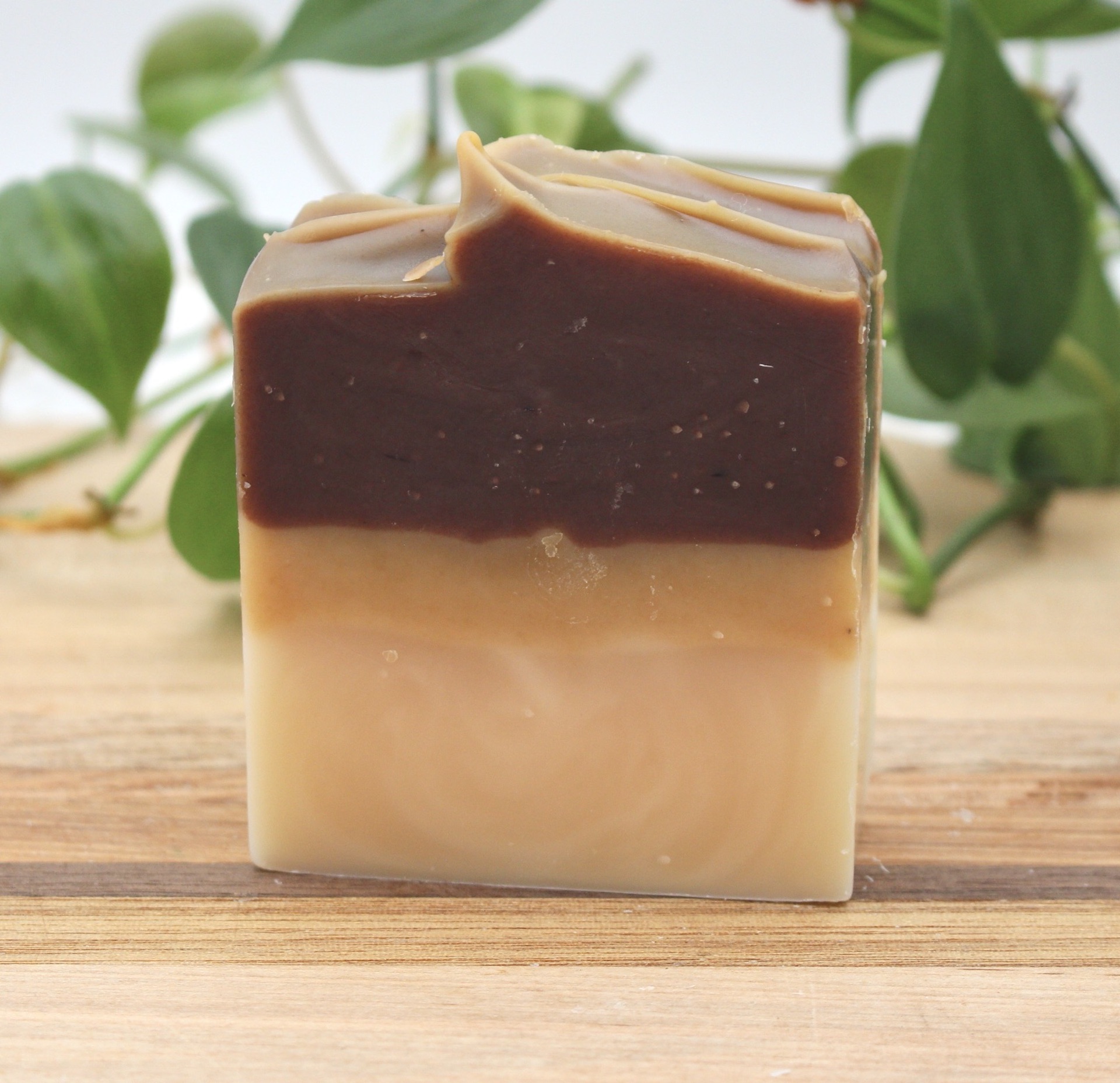 Ingredients: olive oil, coconut oil, tallow, sunflower oil, castor oil, water, lye, pine, eucalyptus, peppermint and lemongrass essential oils, honey, and cocoa powder