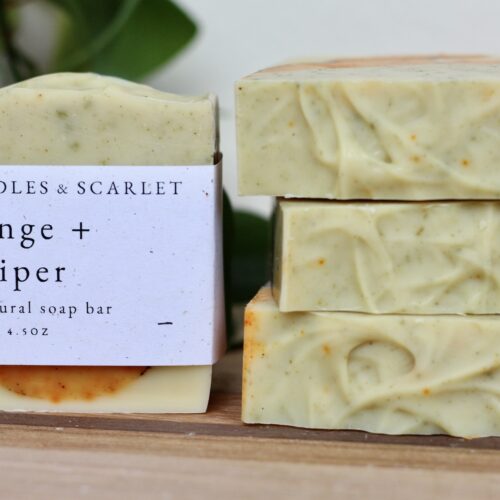 Spindles and Scarlet All-Natural Soap Bars are handcrafted in small batches using the cold process method. Our recipes use nourishing oils and butters, natural colorants, and essential oil scents to create a 100% natural soap bar that gives you a gentle clean without over-drying.